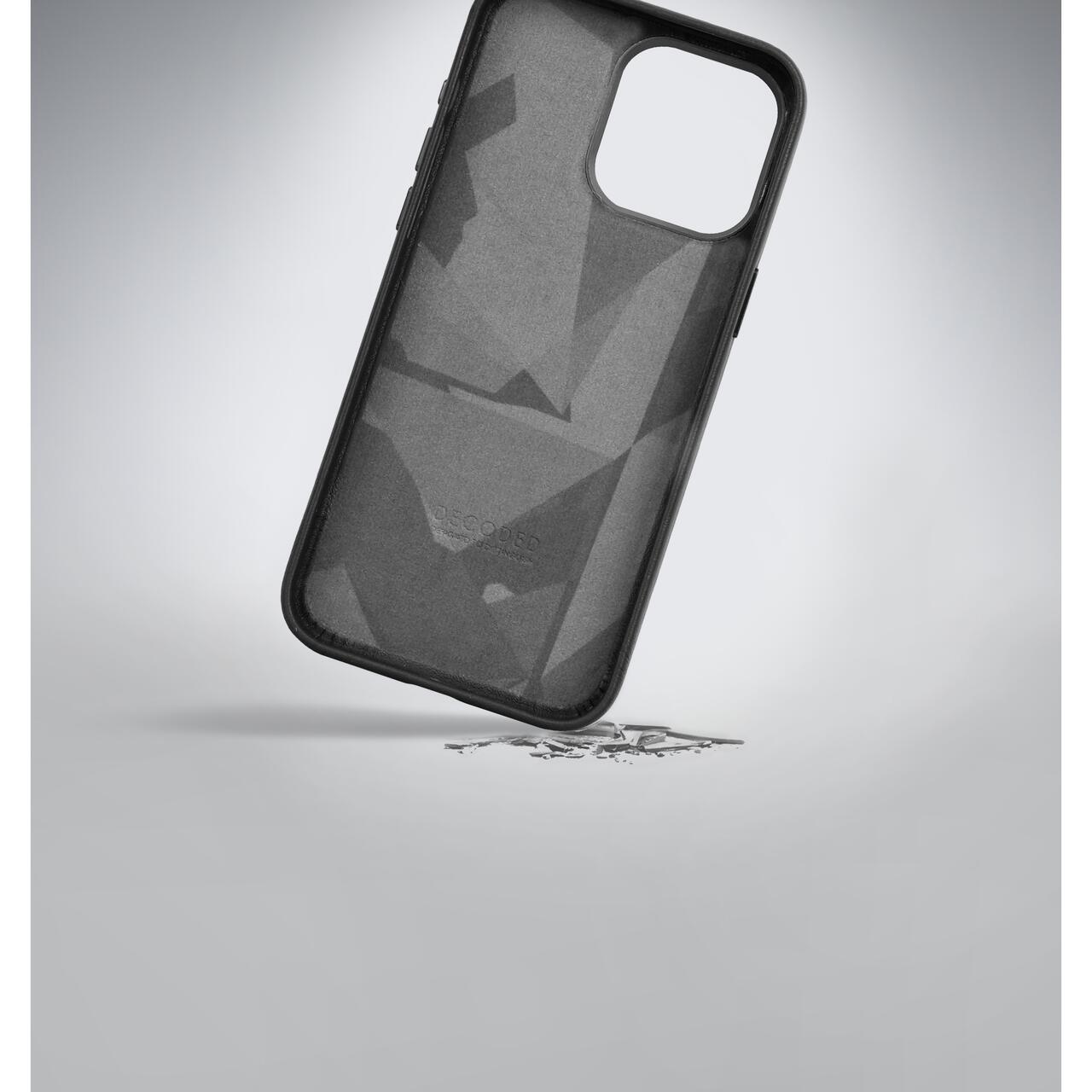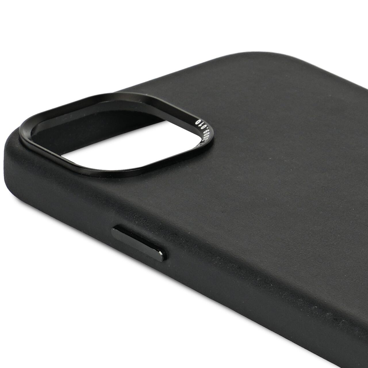 The leather protective case suitable for your iPhone 15 Plus provides optimal protection against bumps and scratches without compromising the design of your iPhone 15 Plus. This Back Cover with MagSafe is made of premium ECCO aniline leather over an impact-resistant PC cover. The raised edge around your phone screen and raised metal camera ring tastefully protect your screen and camera lens, keeping them from resting directly on the surface. On the inside of the phone case, the inlay pattern has been updated with geometric lines and shades made of microfiber. This ensures that the back of your phone remains well protected as well. The unique DECODED label is now subtly pressed into the left corner of the case. The brushed metal buttons on the protective back cover accentuate the natural design of your iPhone for a beautiful minimalist look. The integrated MagSafe magnets in the case extend the operation of your iPhone's MagSafe which allows for optimal placement of your iPhone in the Back Cover and supports the convenience of MagSafe accessories such as chargers, desk stands and card sleeves.