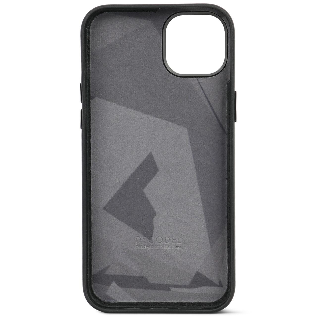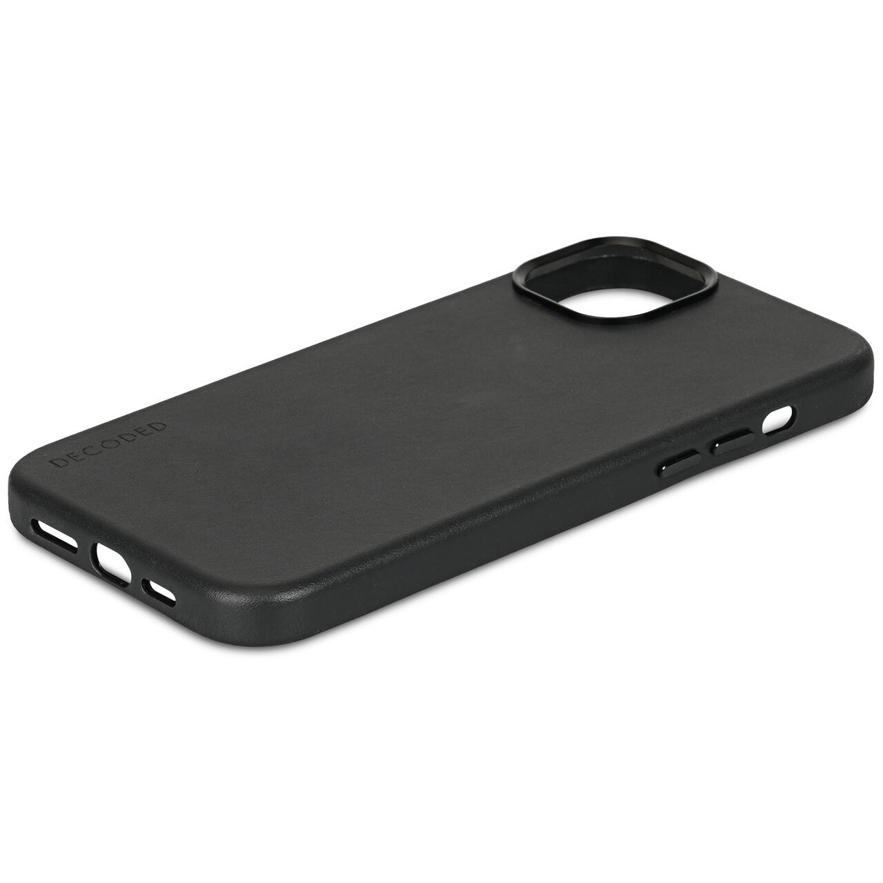 The Leather Back Cover suitable for Apple iPhone 15 Plus is specially designed with functionality and style in mind. A minimalistic design with maximum protection. A style icon that offers your iPhone 15 Plus protection against all daily exposures. The Back Cover has "DECODED" printed on the bottom left and the year of creation on the metal edge around the camera, which provides a subtle styling to the phone case.