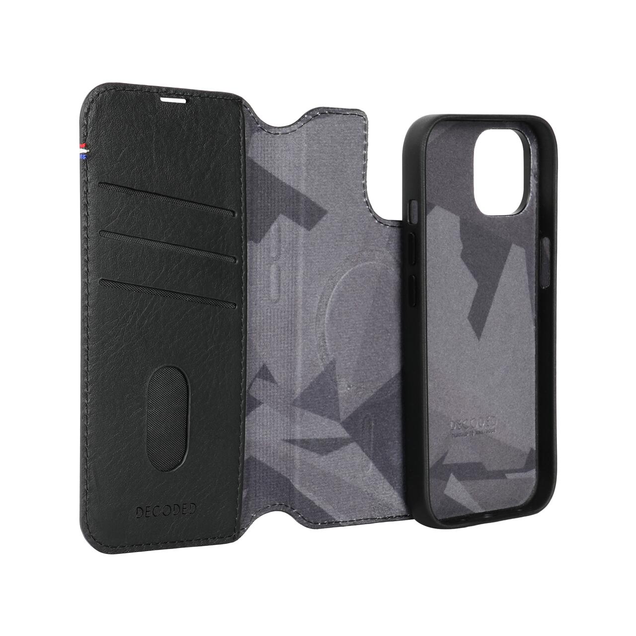 The 2-in-1 Detachable Wallet suitable for iPhone 15 is multifunctional in use and therefore equipped with all conveniences. The Back Cover is easy to detach and attach to the Wallet Case by means of magnets. So you have your most important cards always at hand, but you can also only use the Back Cover.The leather Detachable Wallet offers optimal protection against bumps and scratches without the design of your iPhone 15 short. The unique 2-in-1 design offers great flexibility in use. The Back Cover is finished with two additional magnets for a perfect and secure alignment, allowing you to quickly and easily attach the Back Cover to the included Wallet. You quickly and easily switch from Wallet Case to Back Cover Case when you need to charge or make a call. This full case features premium ECCO aniline leather. The wallet offers recommended space for 3 cards.The integrated MagSafe magnets in the case extend the operation of your iPhone's MagSafe which ensures optimal placement of your iPhone in the Back Cover and supports the convenience of MagSafe accessories such as chargers, desk stands and card sleeves.